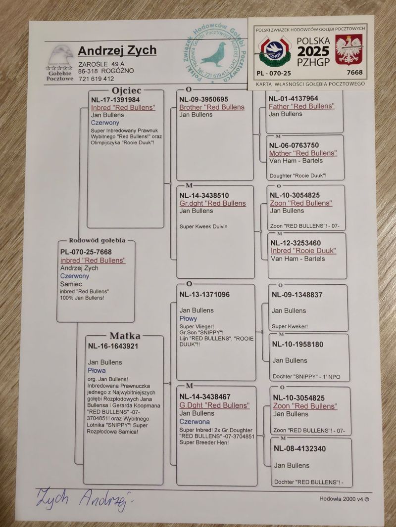 PL-070-25-7668 - 100% Jan Bullens! Super inbred na Słynnego RED BULLENSA! Extra na Maratony! Okazja!