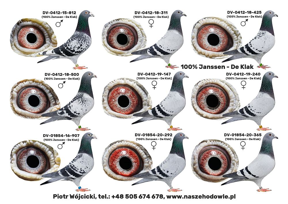 Opis: oryg. Wójcicki Piotr (100% Janssen - De Klak) Szczegóły pochodzenia w rodowodzie i załączonych materiałach. Więcej informacji o gołębiach i transporcie pod nr tel.: +48 505 674 678.