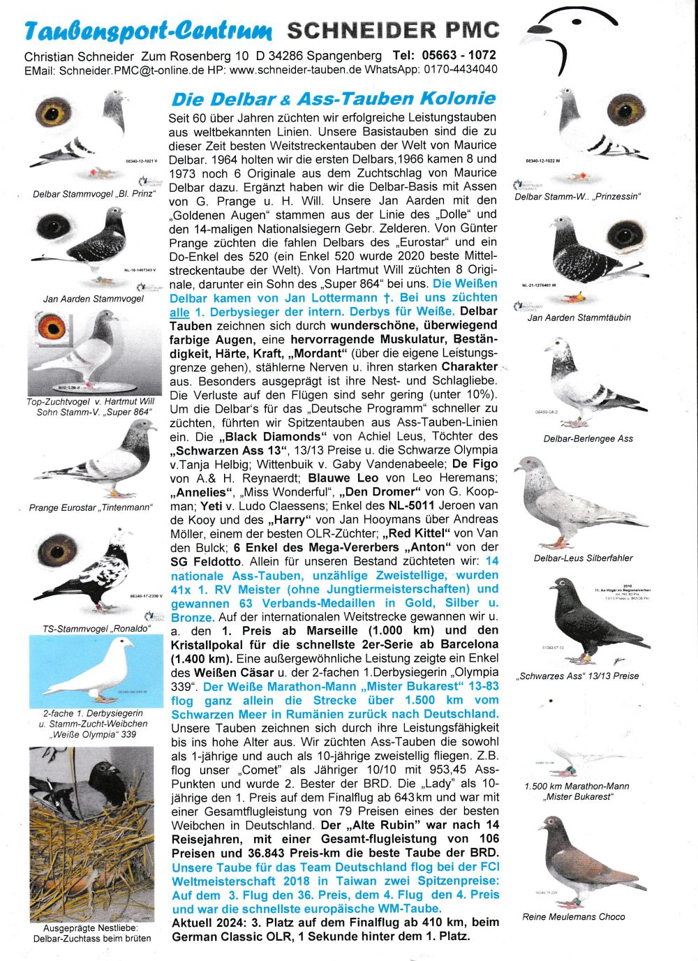 Opis: OLR German Classic 2025 Szczegóły pochodzenia w rodowodzie. Gołąb brał udział w rywalizacji na wspólnym gołębniku OLR German Classic (wyniki dostępne na stronie internetowej - www.german-classic-olr.de). Gołąb jest sprzedawany bezpośrednio od organizatora i znajduje się w Polsce, można go obejrzeć w miejscowości Zblewo (woj. pomorskie), po wcześniejszym kontakcie telefonicznym. Więcej informacji o gołębiu i transporcie pod nr tel.: 511 607 710.