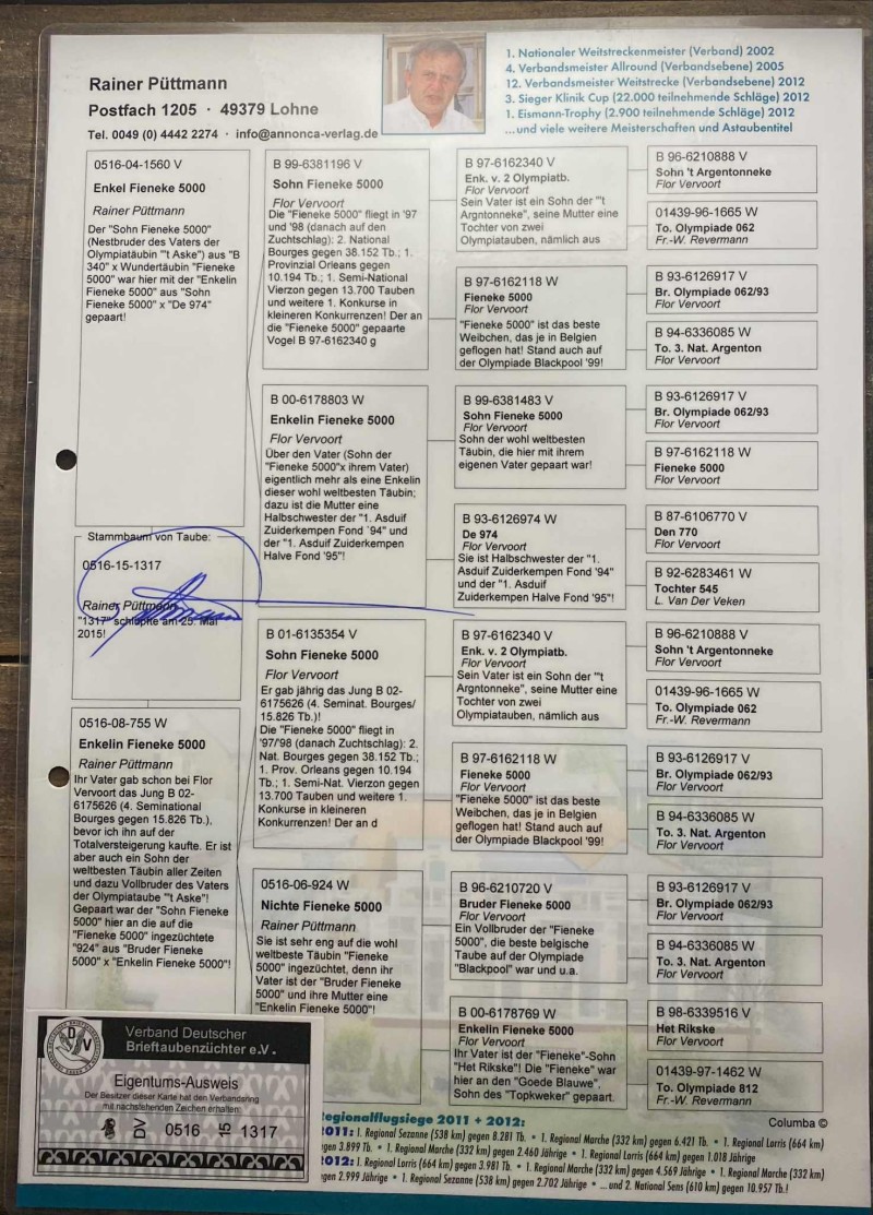 Opis: LIKWIDACJA HODOWLI Oryginalny gołąb z hodowli Rainera Puttmanna. Szczegóły pochodzenia w rodowodzie. Więcej informacji pod nr tel.: 577 608 267