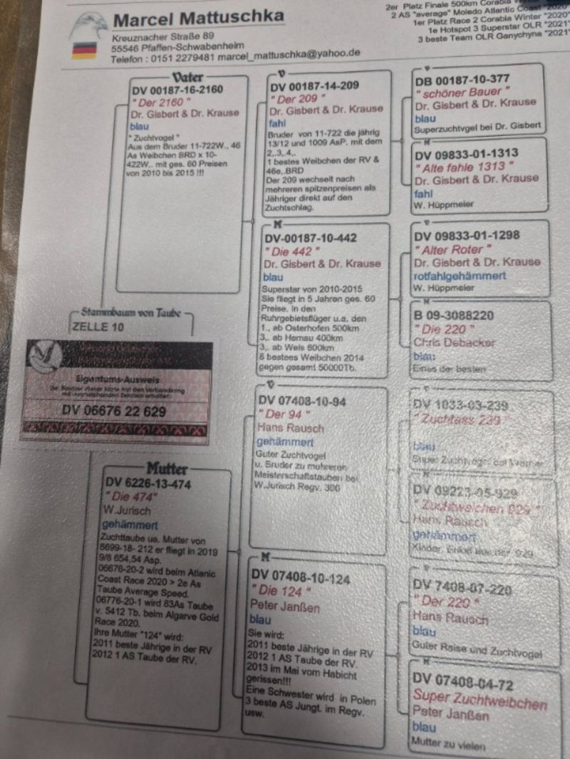 Opis: Oryginalny gołąb z hodowli - Marcel Mattuschka. Więcej informacji pod numerem telefonu: +48 515 143 940