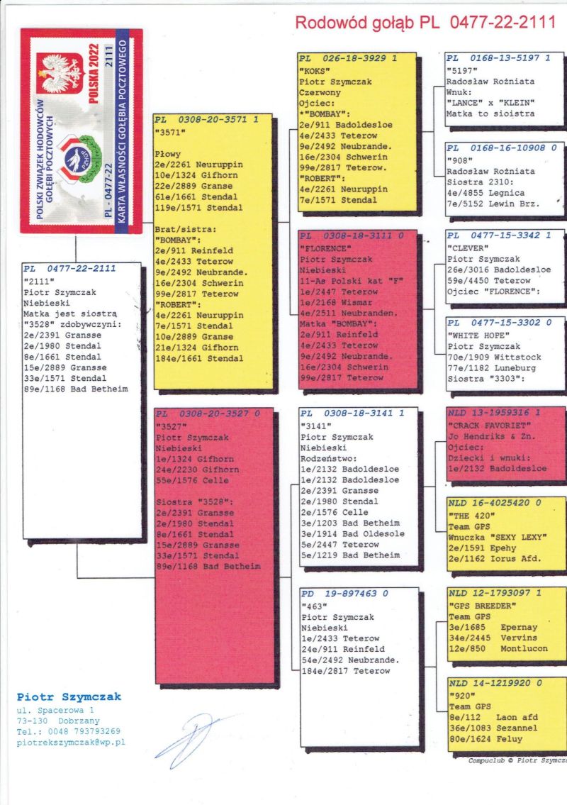 Opis: Z racji tego, iż od dwóch lat lotujemy tylko i wyłącznie samicami do odstąpienia mamy nadwyżkę samców z roku 2025 i 2024 – gołębie te były lotowane jako młode i przeszły cały program lotowy. Gołębie roczne w 2025 roku były partnerami do samic lotowych. Gołębie wywodzą się z naszych najlepszych gołębi lotowych i rozpłodowych – szczegóły w rodowodach. W tym rok 2025 lotując tylko 33 samicami zdobyliśmy: MISTRZOSTWO POLSKI KATEGORIA „B” -95 Przodownik; MISTRZOSTWO REGIONU V 2025 - KATEGORIA "B"-14 Przodownik MISTRZOSTWO OKRĘGU WROCŁAW 2025 KATEGORIA "B"- 6 Przodownik MISTRZ ODDZIAŁU 2025 KATEGORIA "B Kategoria Wystawowa Sport A -2, 3, 12. 24, 36 gołąb Kategoria Wystawowa Sport B -1, 4, 5, 14, 44 gołąb Kategoria Wystawowa Sport D – 2, 4, 5, 23 gołąb Kategoria Wystawowa Sport W – 8, 11, 12, 13, 17, 22, 32 gołąb Kategoria Wystawowa Olimpijski Standard Samice – 5, 6, 8 ,9, 10, 13, 16, 22, 57 gołąb