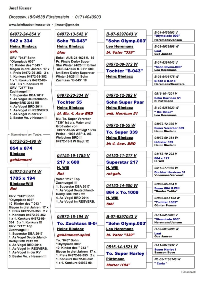 DV-05138-25-490 Heinz Bindacz/H.Will -Josef Kusser 4 miejsce w Niemczech gołębi młodych 2025!