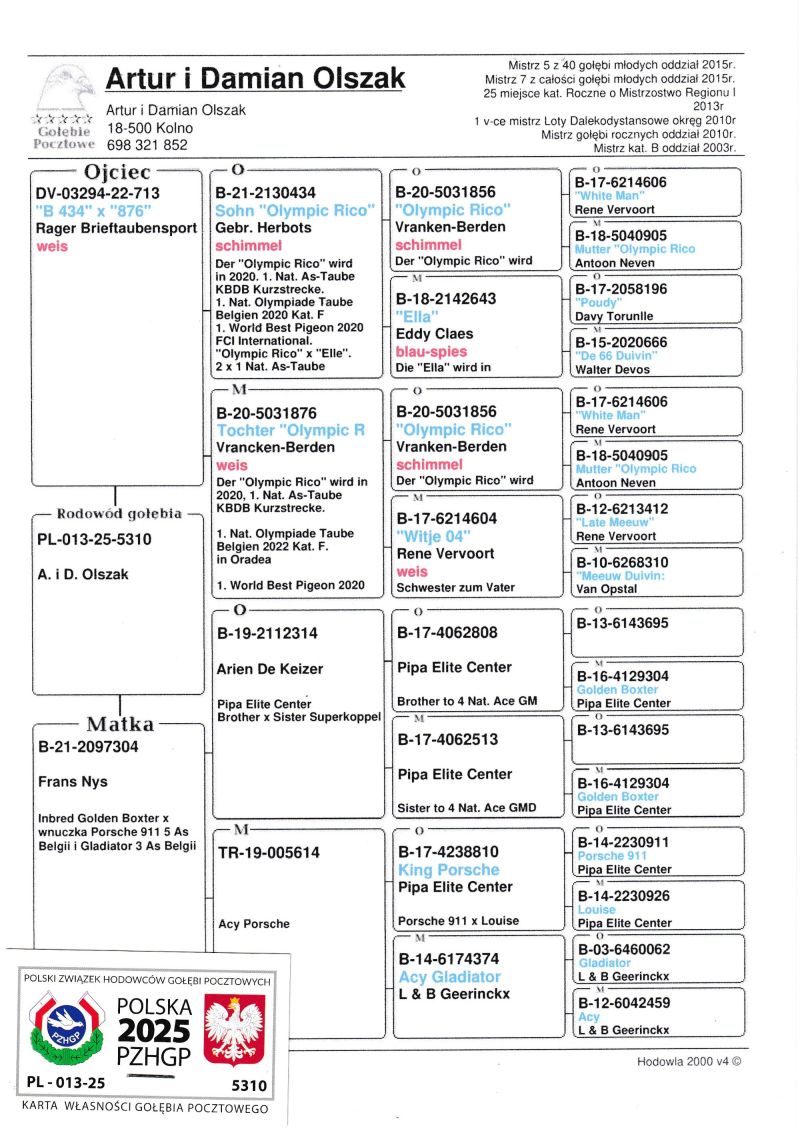 PL-013-25-5380 Mocny inbred Olympic Rico 1 As Belgii w 2020r. 3 miejsce na Olimpiadzie w Oradei w Rumunii w 2022 roku KUP TERAZ