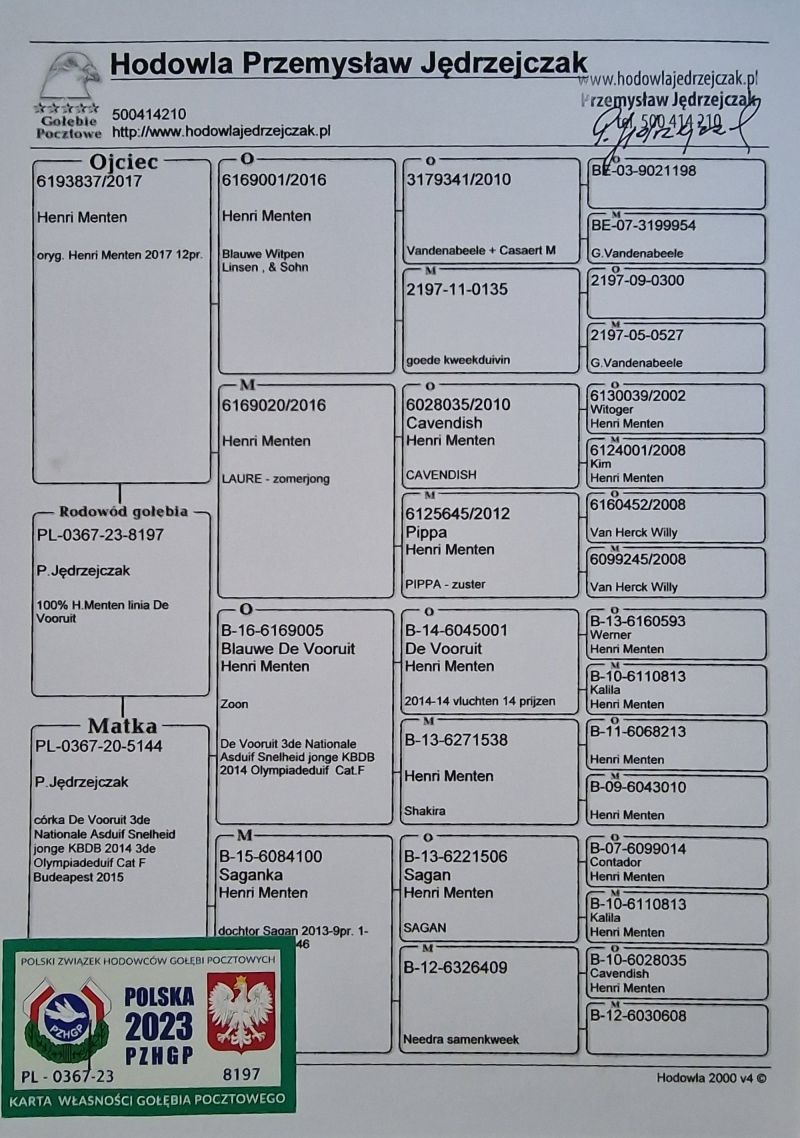 Na aukcjach oferuję wszystkie młode przelotowane cały program. Gołębie wylatały w tym roku we wszystkich współzawodnictwach I Vce Mistrza Oddziału (po rocznej przerwie). W 100 lotnikach w Oddziele ok. 40szt. Młode nie zaciemniane, wiosenne. We wcześniejszych latach rodzeństwo lub rodzice wylatały wiele czołowych lokat w tym tytuły Mistrzowskie kat. A, GMP czy OPEN. Gołębie wywodzą się z topowych hodowli (niejednokrotnie bezpośrednio po najlepszych ptakach). Więcej informacji w rodowodach lub pod telefonem 509898632. Płeć gołębia określona orientacyjnie – nie daję 100% pewności. Odbiór osobisty lub po zorganizowaniu transportu (cena do ustalenia).