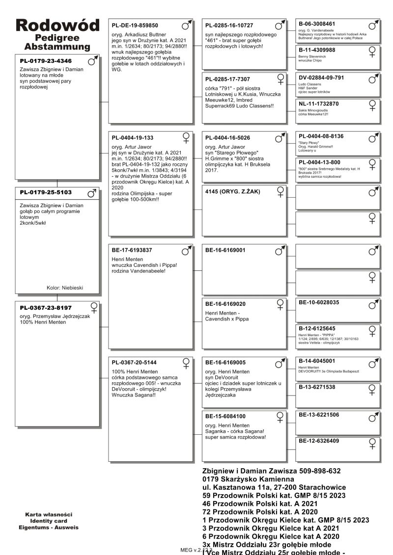 PL-0179-25-5103 - Zawisza Zbigniew i Damian – gołąb po całym programie lotowym