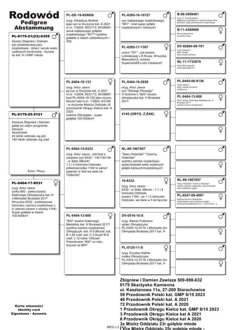 PL-0179-25-5121 - Zawisza Zbigniew i Damian – gołąb po całym programie lotowym