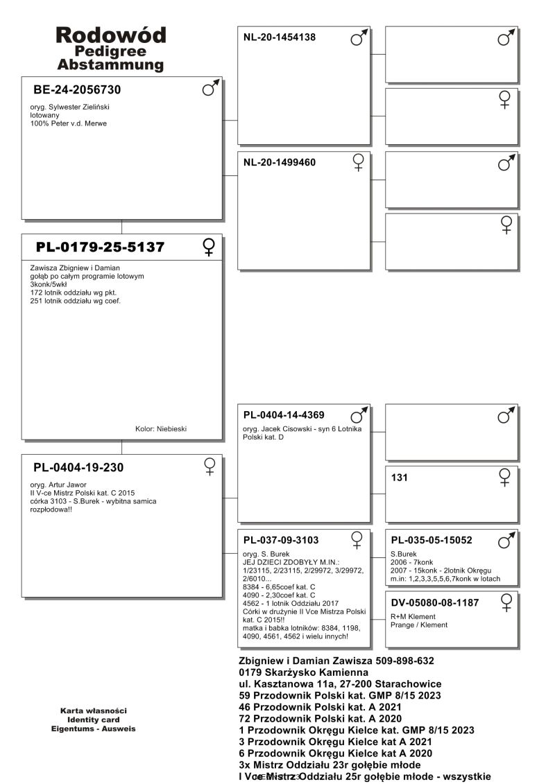 PL-0179-25-5193 - Zawisza Zbigniew i Damian – gołąb po całym programie lotowym