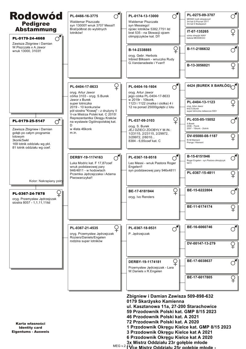 PL-0179-25-5106 - Zawisza Zbigniew i Damian – gołąb po całym programie lotowym