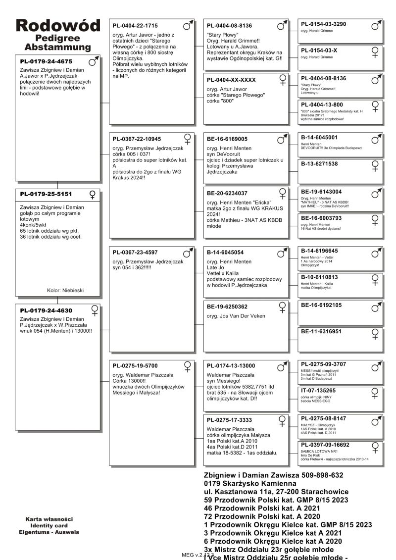 PL-0179-25-5106 - Zawisza Zbigniew i Damian – gołąb po całym programie lotowym