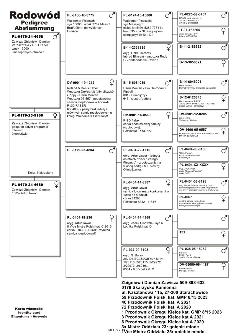 PL-0179-25-5106 - Zawisza Zbigniew i Damian – gołąb po całym programie lotowym