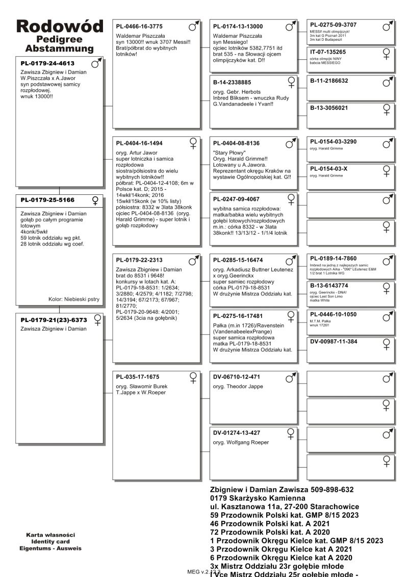 PL-0179-25-5106 - Zawisza Zbigniew i Damian – gołąb po całym programie lotowym