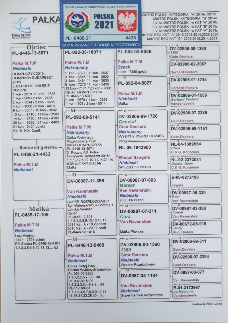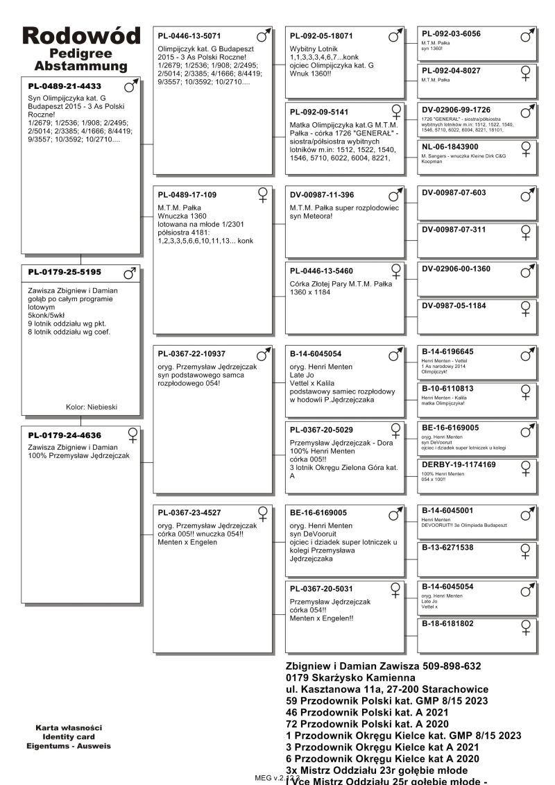 PL-0179-25-5106 - Zawisza Zbigniew i Damian – gołąb po całym programie lotowym