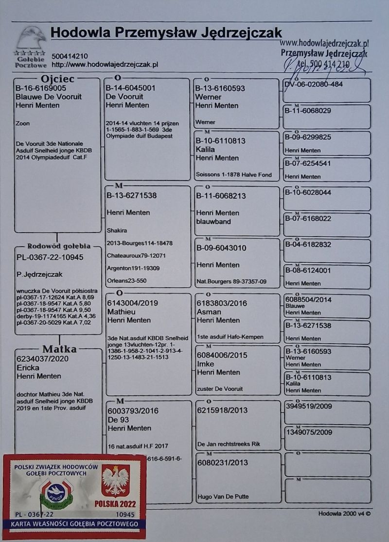 Na aukcjach oferuję wszystkie młode przelotowane cały program. Gołębie wylatały w tym roku we wszystkich współzawodnictwach I Vce Mistrza Oddziału (po rocznej przerwie). W 100 lotnikach w Oddziele ok. 40szt. Młode nie zaciemniane, wiosenne. We wcześniejszych latach rodzeństwo lub rodzice wylatały wiele czołowych lokat w tym tytuły Mistrzowskie kat. A, GMP czy OPEN. Gołębie wywodzą się z topowych hodowli (niejednokrotnie bezpośrednio po najlepszych ptakach). Więcej informacji w rodowodach lub pod telefonem 509898632. Płeć gołębia określona orientacyjnie – nie daję 100% pewności. Odbiór osobisty lub po zorganizowaniu transportu (cena do ustalenia).