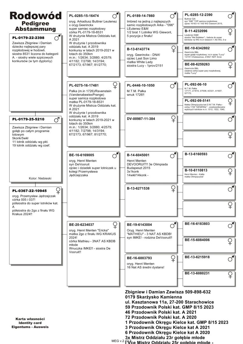 PL-0179-25-5210 - Zawisza Zbigniew i Damian – gołąb po całym programie lotowym
