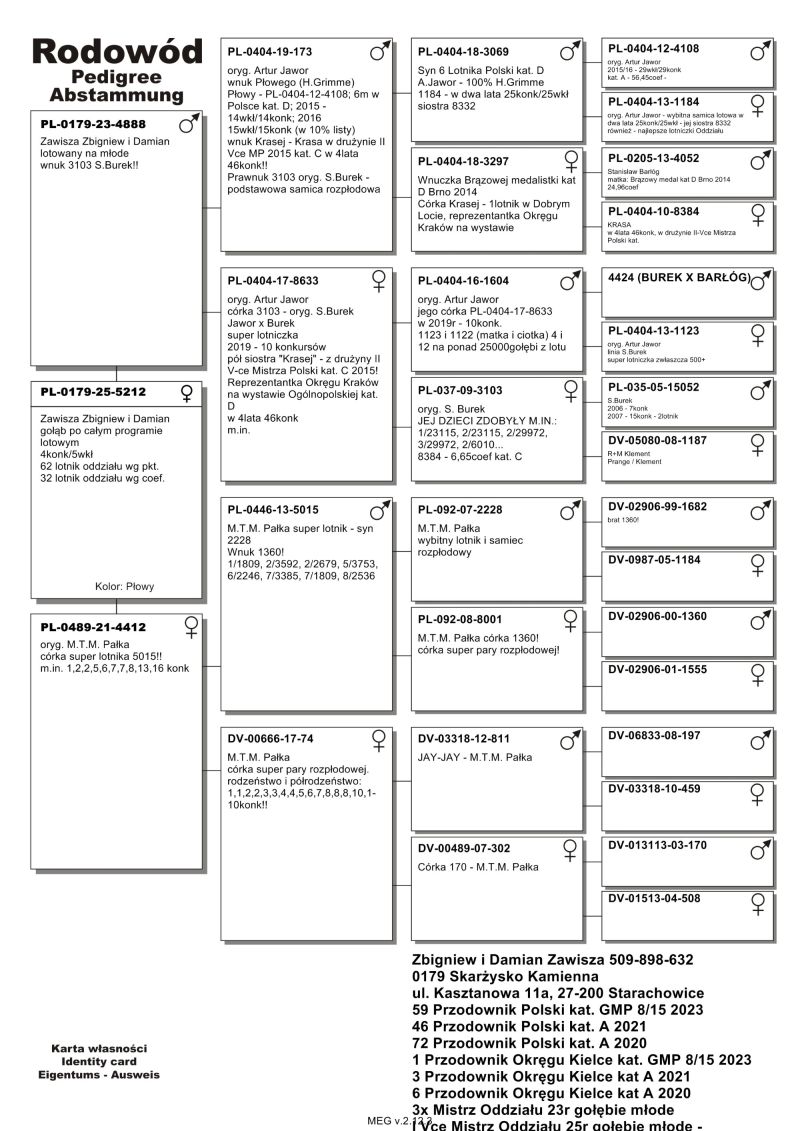 PL-0179-25-5106 - Zawisza Zbigniew i Damian – gołąb po całym programie lotowym