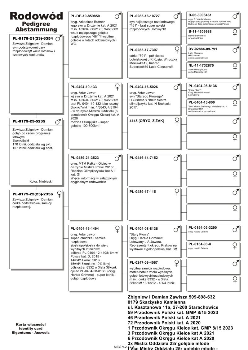 PL-0179-25-5190 - Zawisza Zbigniew i Damian – gołąb po całym programie lotowym
