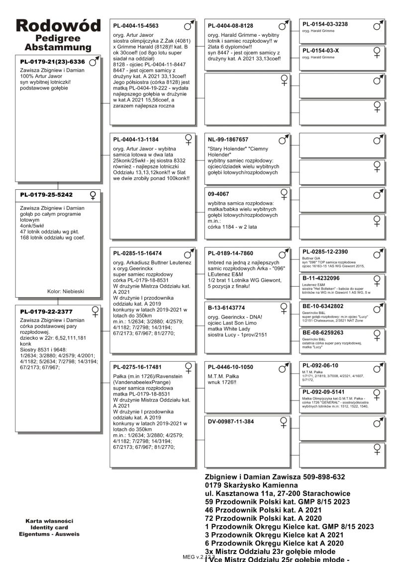 PL-0179-25-5305 - Zawisza Zbigniew i Damian – gołąb po całym programie lotowym
