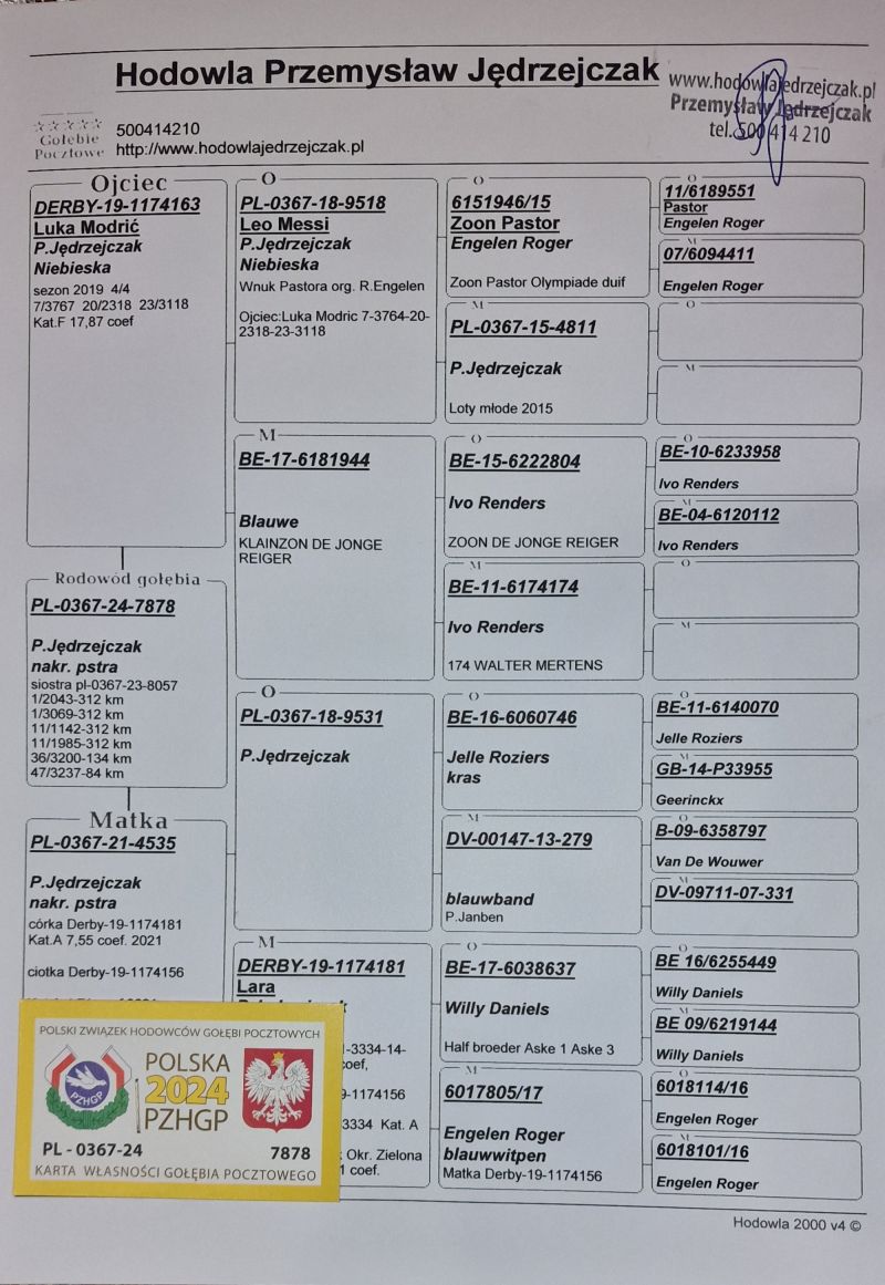 PL-0179-25-5106 - Zawisza Zbigniew i Damian – gołąb po całym programie lotowym