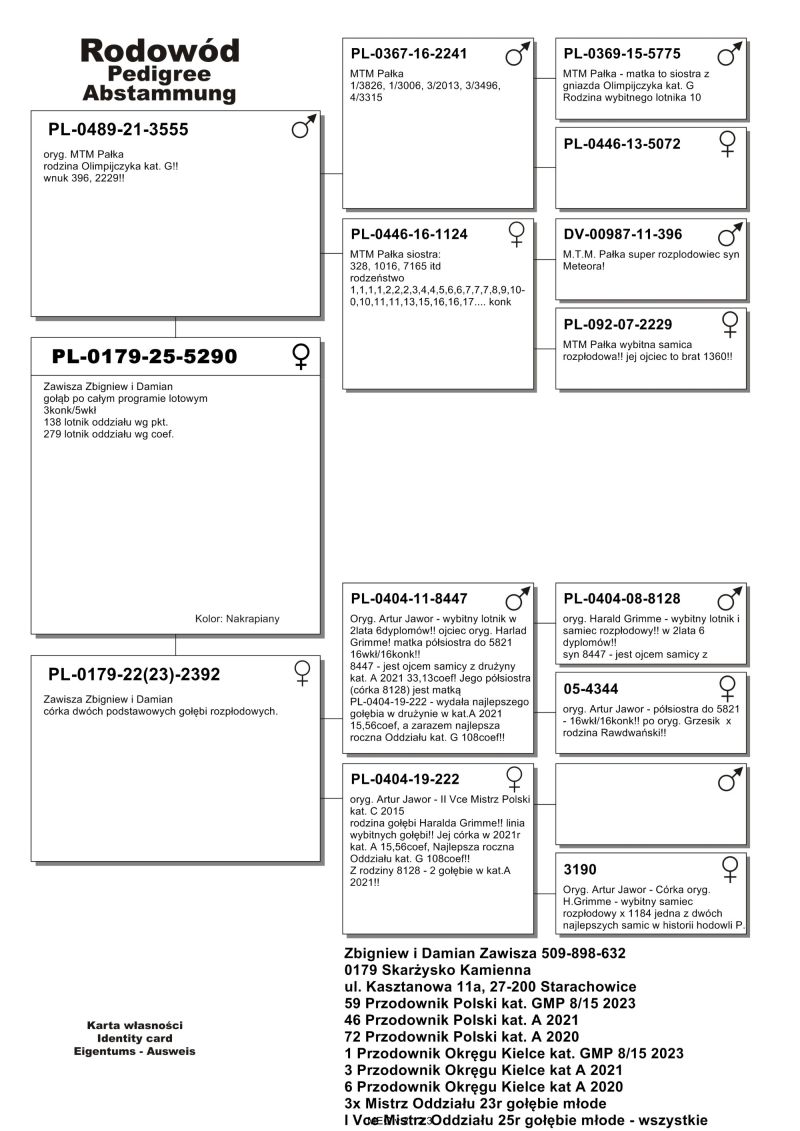 PL-0179-25-5290 - Zawisza Zbigniew i Damian – gołąb po całym programie lotowym