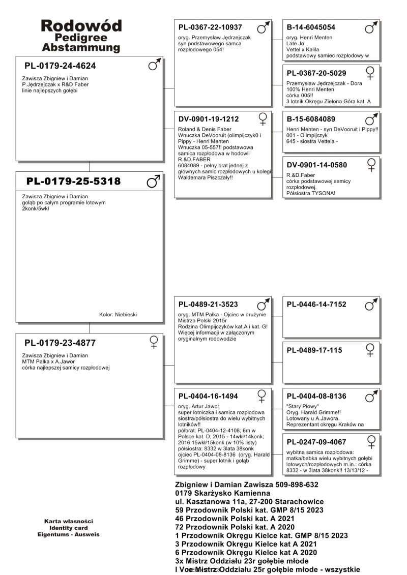 PL-0179-25-5318 - Zawisza Zbigniew i Damian – gołąb po całym programie lotowym
