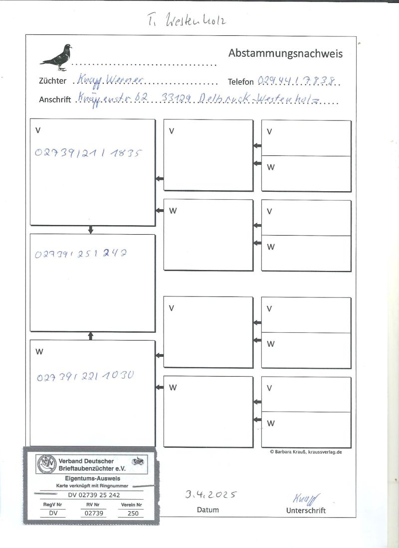 Gołębie ze wspólnego gołębnika UPLAND DERBY Willingen,szczegóły pochodzenia w rodowodzie.Gołębie brały udział w 11 lotach treningowych , 4 konkursowych i 5 lot Finałowy 344km,Więcej informacji pod nr tel.: 603 312 976, transport gołębi po wcześniejszej wpłacie pieniążków na konto .Gołębie będą rozwożone po 07.11.2025 ,koszt transportu 1-3szt-120zł,3-6szt-140zł płatne kurierowi.