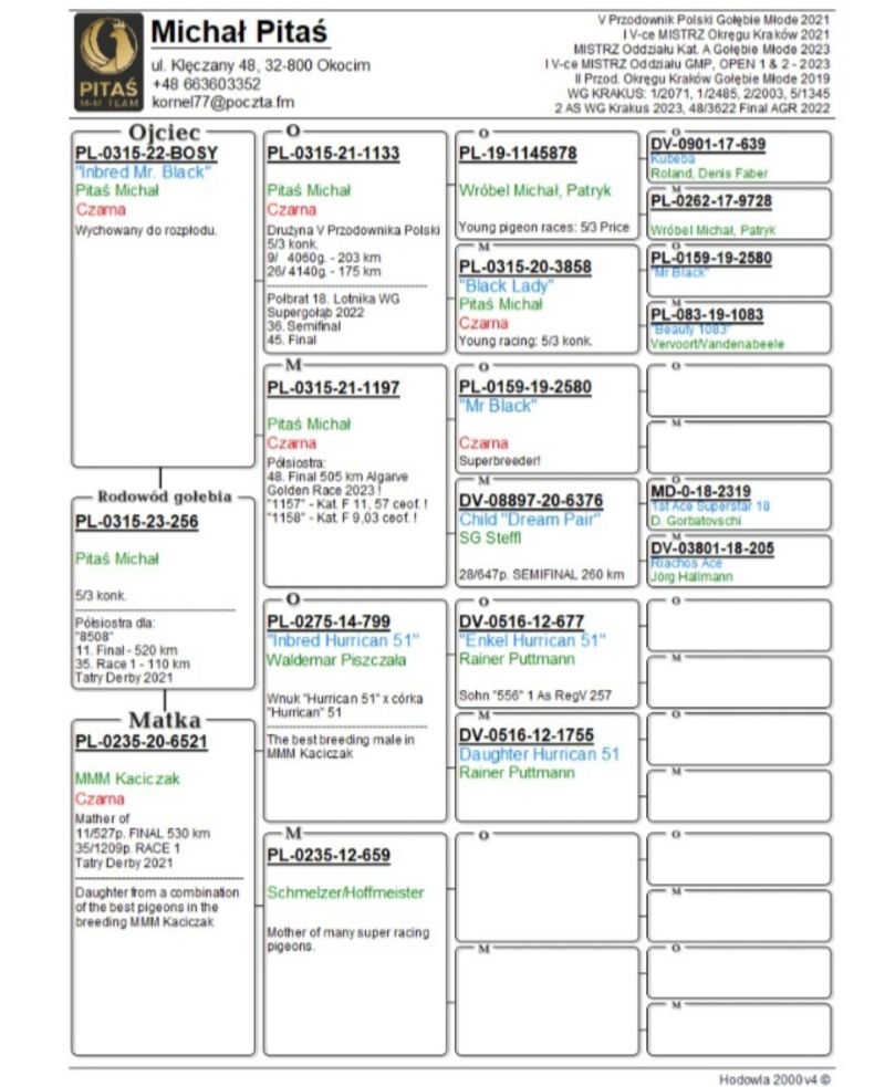 PL-0179-25-5106 - Zawisza Zbigniew i Damian – gołąb po całym programie lotowym
