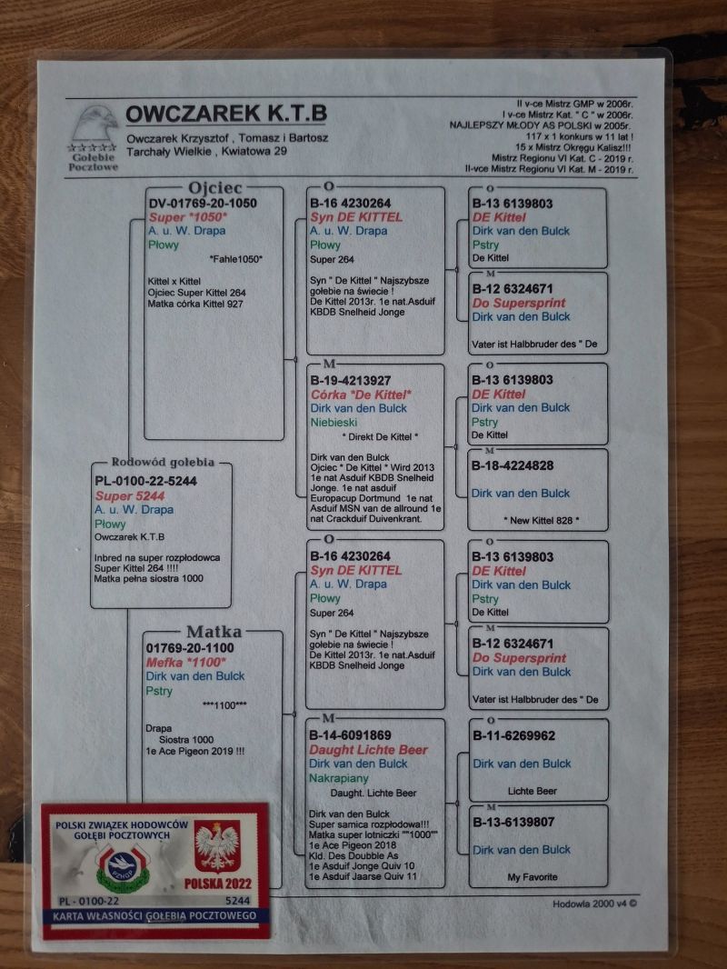 PL-0496-23-2996 KNAPCZYK MM TEAM, Brat "Pattaya SkyPower" i "Pattay SkyPower II" z gołębi Mistrza Świata!