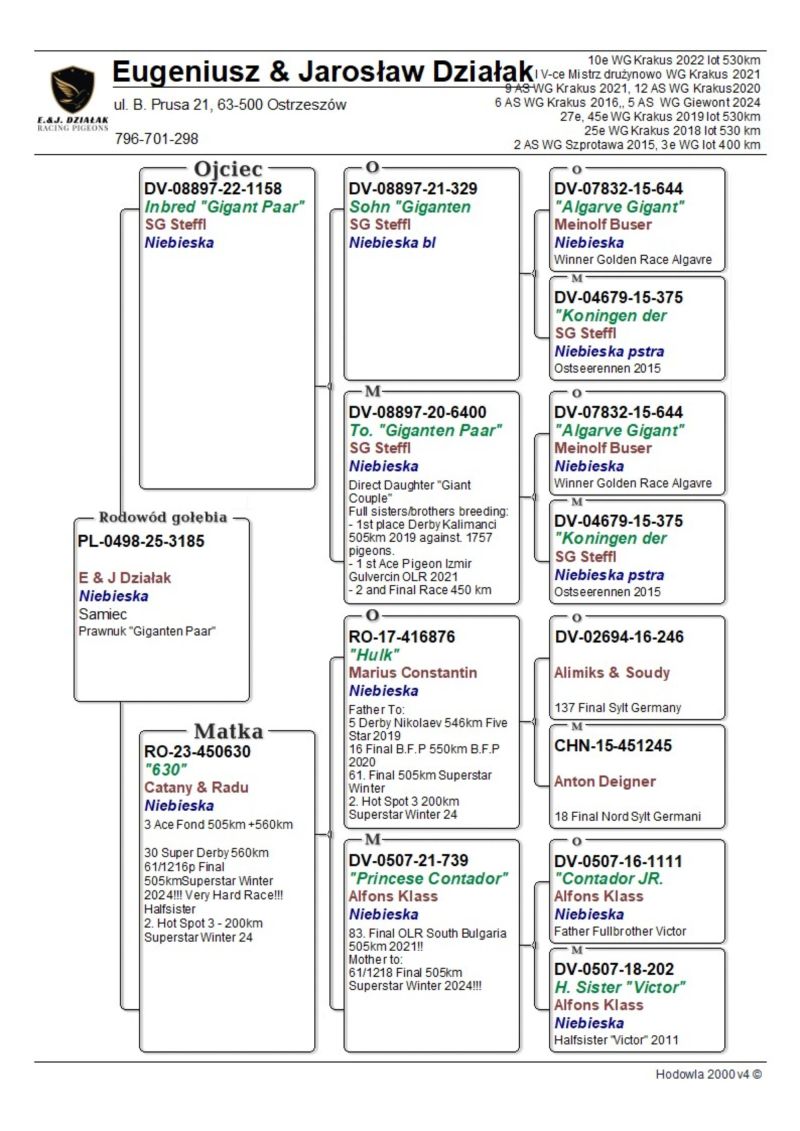 PL-0498-25-3185 - syn inbred "Giganten Paar SG Steffl x 3 As daleki dystans WG SuperStar