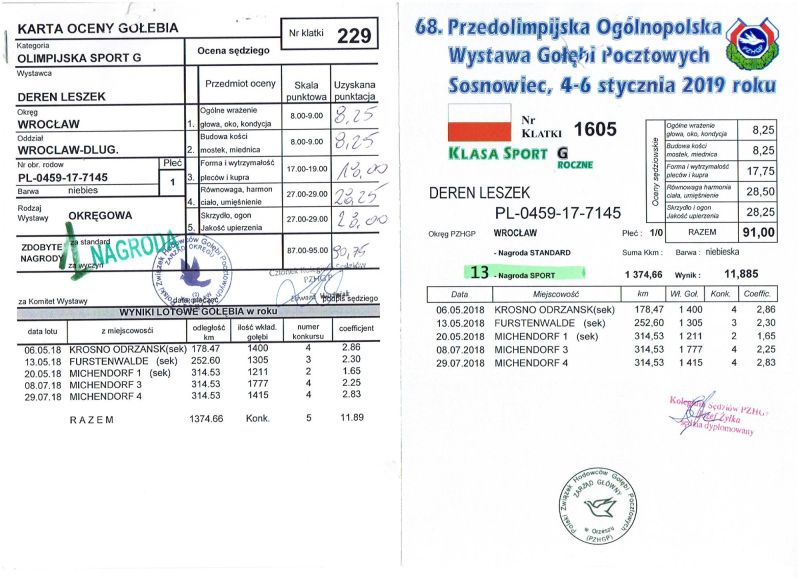PL-0179-25-5105 - Zawisza Zbigniew i Damian – gołąb po całym programie lotowym