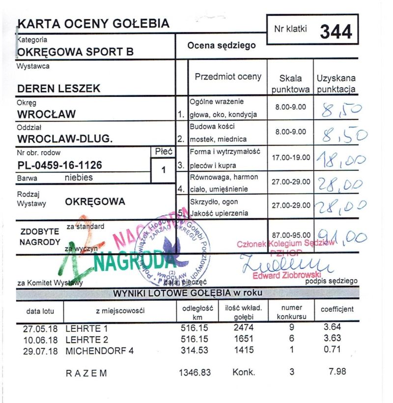 PL-0179-25-5307 - Zawisza Zbigniew i Damian – gołąb po całym programie lotowym