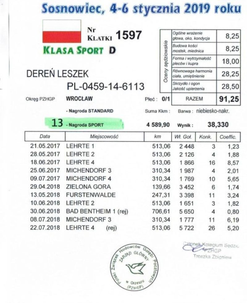 PL-0179-25-5106 - Zawisza Zbigniew i Damian – gołąb po całym programie lotowym