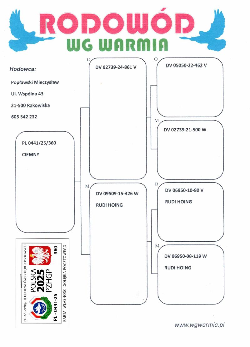 PL-0353-23-11191 Syn Szlachetnej 5x 1k & 7160 gołąb z drużyny Vice Mistrza Okręgu kat. roczne
