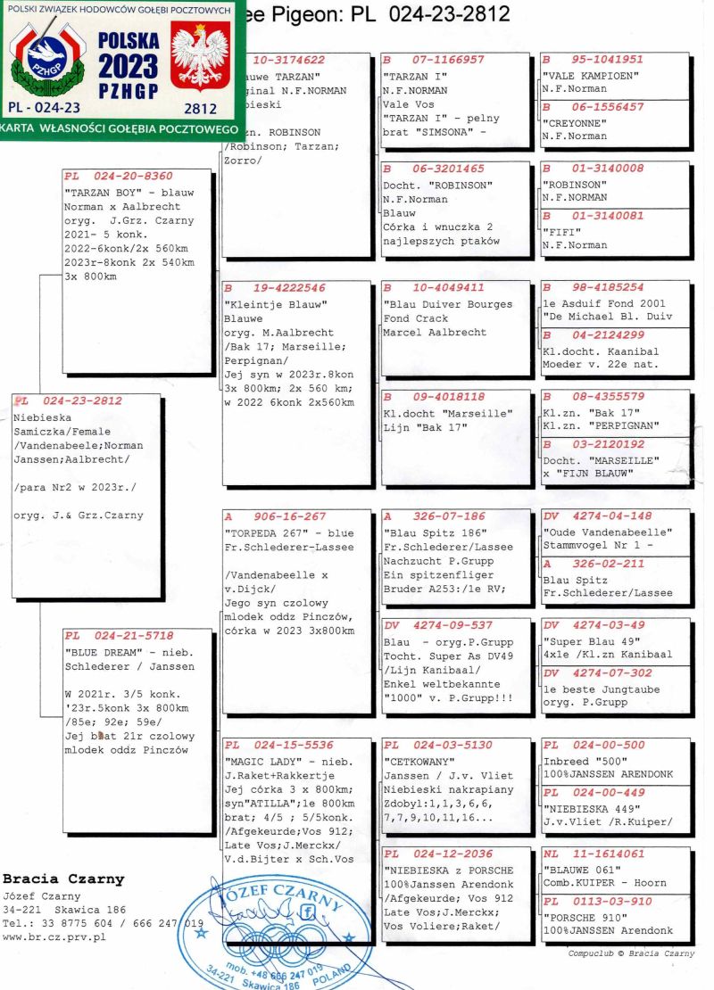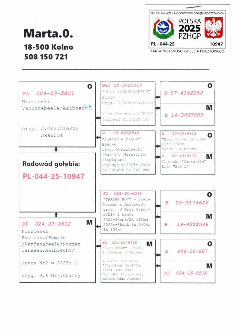 Uczestnik WG Warmia 2025, sezon VIII. Loty z kierunku północny wschód, Litwa. 116 z Finału, 302 AS, 148 z Extra Finału. Szczegóły pochodzenia w rodowodzie.