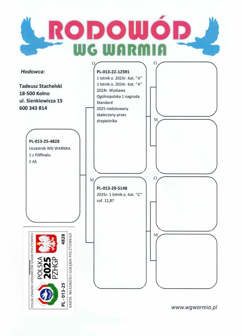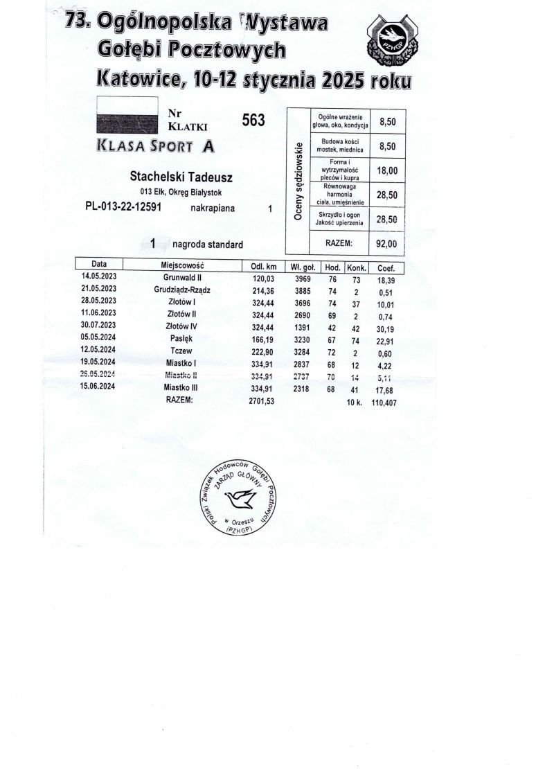PL-0179-25-5190 - Zawisza Zbigniew i Damian – gołąb po całym programie lotowym