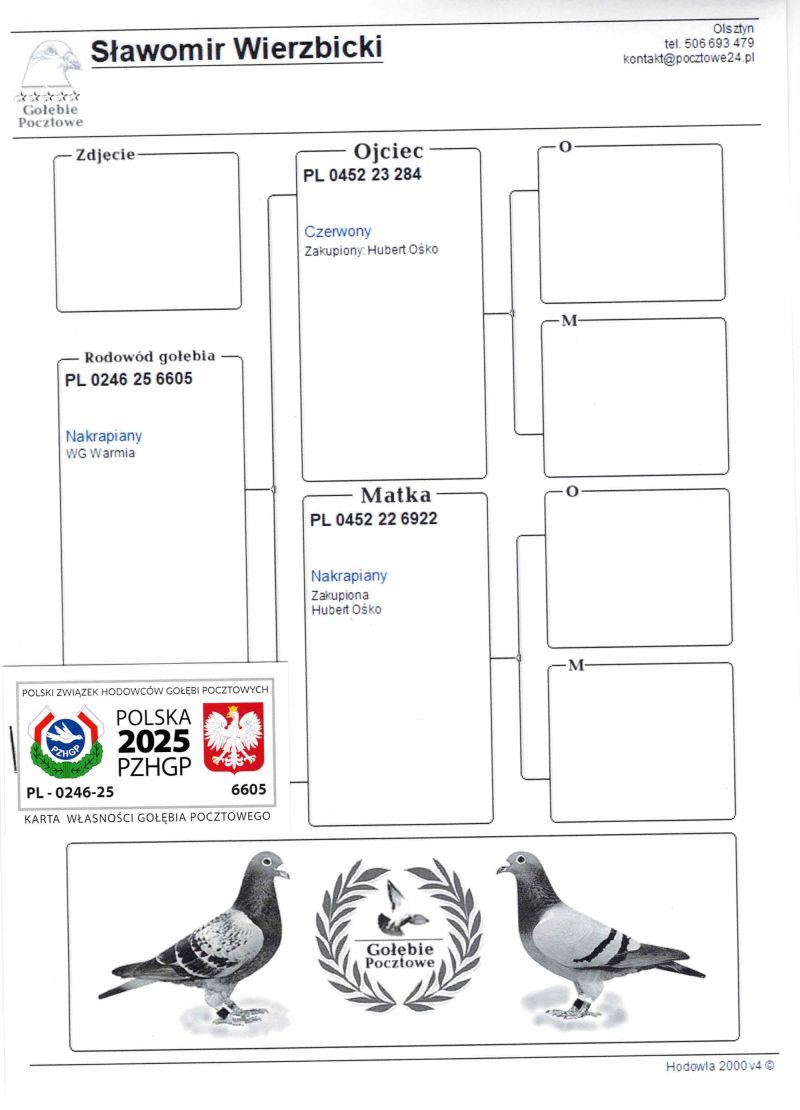 Uczestnik WG Warmia 2025, sezon VIII. Loty z kierunku północny wschód, Litwa. 60 z Finału, 27 AS, 58 z Extra Finału. Szczegóły pochodzenia w rodowodzie.