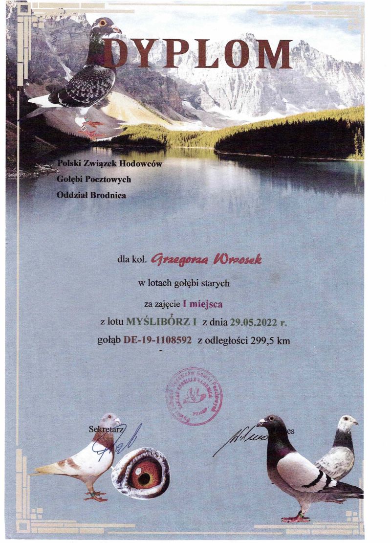 PL-0179-25-5106 - Zawisza Zbigniew i Damian – gołąb po całym programie lotowym
