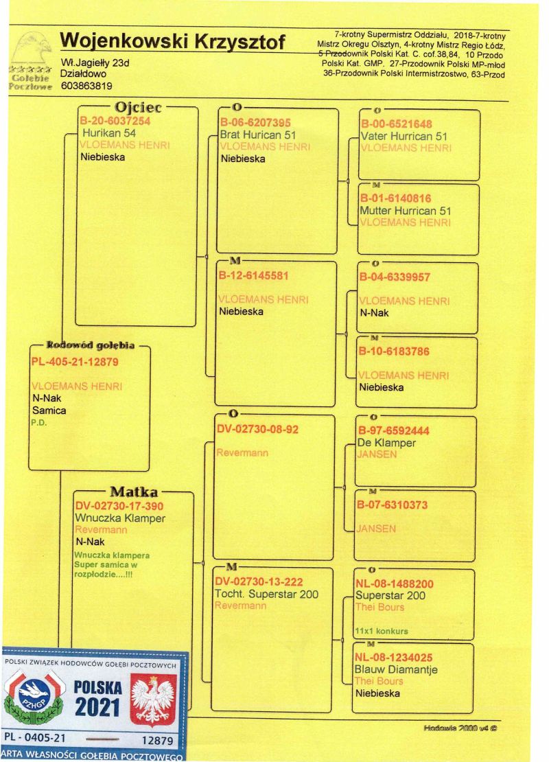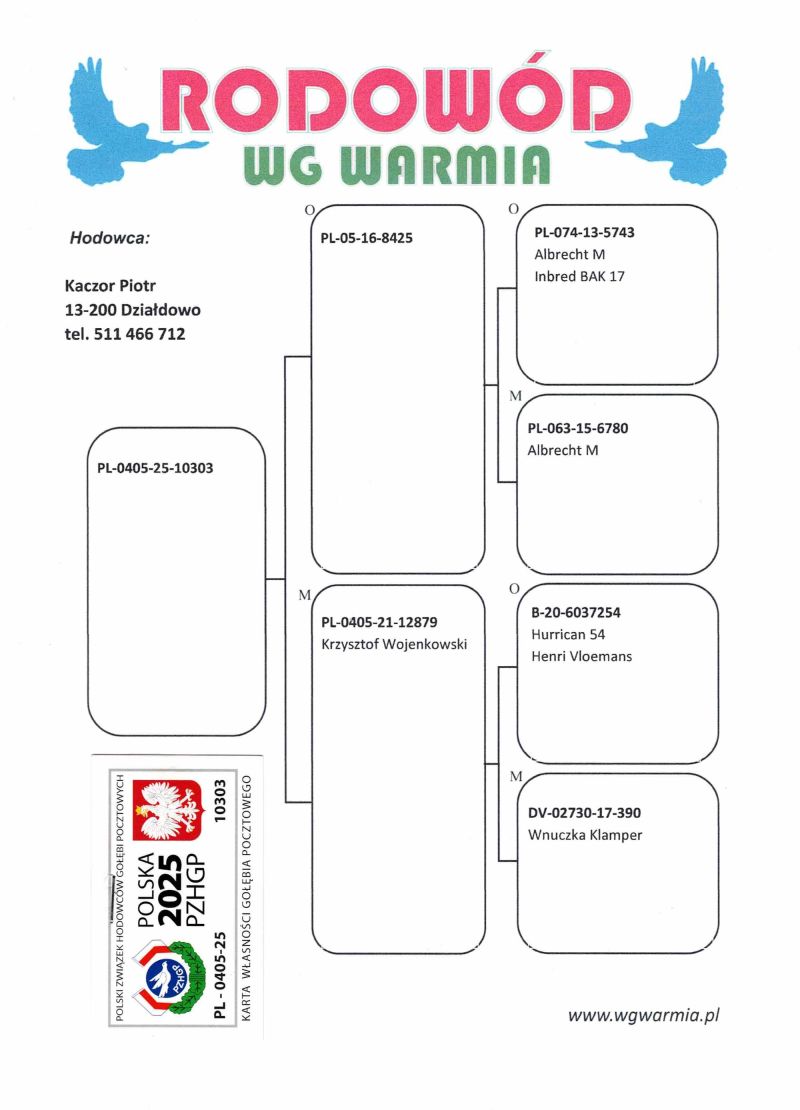 Opis: Uczestnik WG Warmia 2025, sezon VIII. Loty z kierunku północny wschód, Litwa. 18 z Finału, 164 AS, 113 z Extra Finału. Szczegóły pochodzenia w rodowodzie.