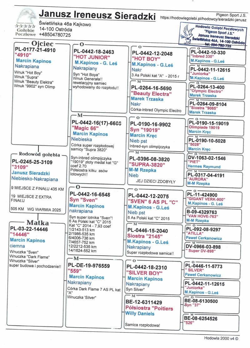 Uczestnik WG Warmia 2025, sezon VIII. Loty z kierunku północny wschód, Litwa. 9 z Finału, 19 AS, 19 z Extra Finału. Szczegóły pochodzenia w rodowodzie.