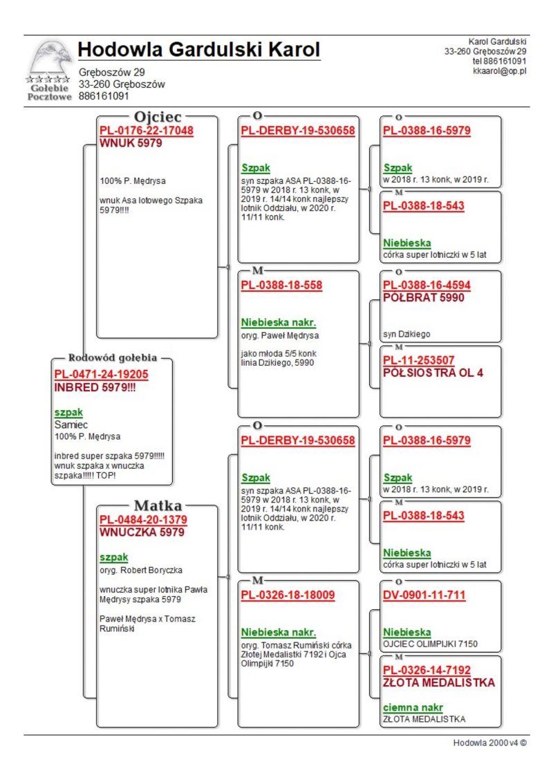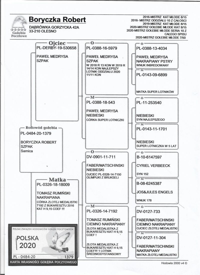 PL-0179-25-5305 - Zawisza Zbigniew i Damian – gołąb po całym programie lotowym