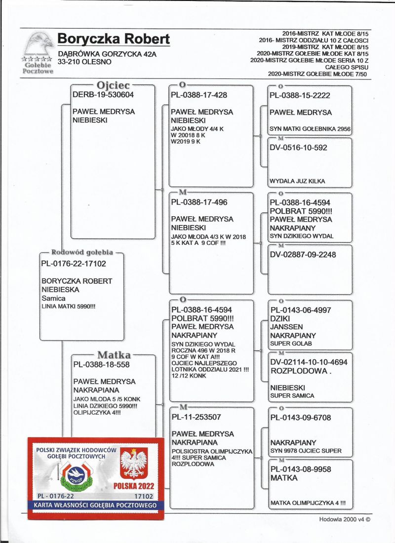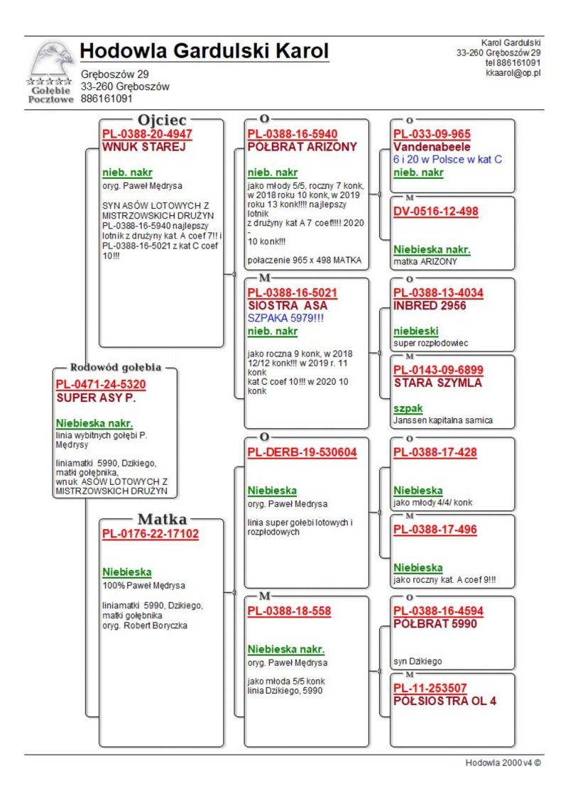 PL-0471-24-5320 - 100% P. Mędrysa linia matki 5990, Dzikiego, matki gołębnika, asów z mistrzowskich drużyn