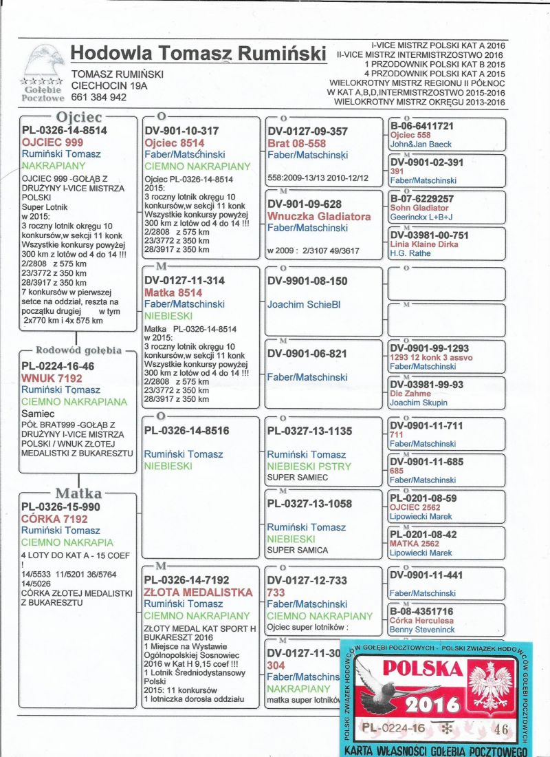PL-0179-25-5192 - Zawisza Zbigniew i Damian – gołąb po całym programie lotowym