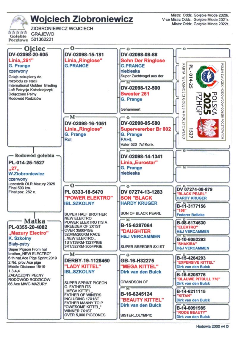 PL-0471-24-5320 - 100% P. Mędrysa linia matki 5990, Dzikiego, matki gołębnika, asów z mistrzowskich drużyn