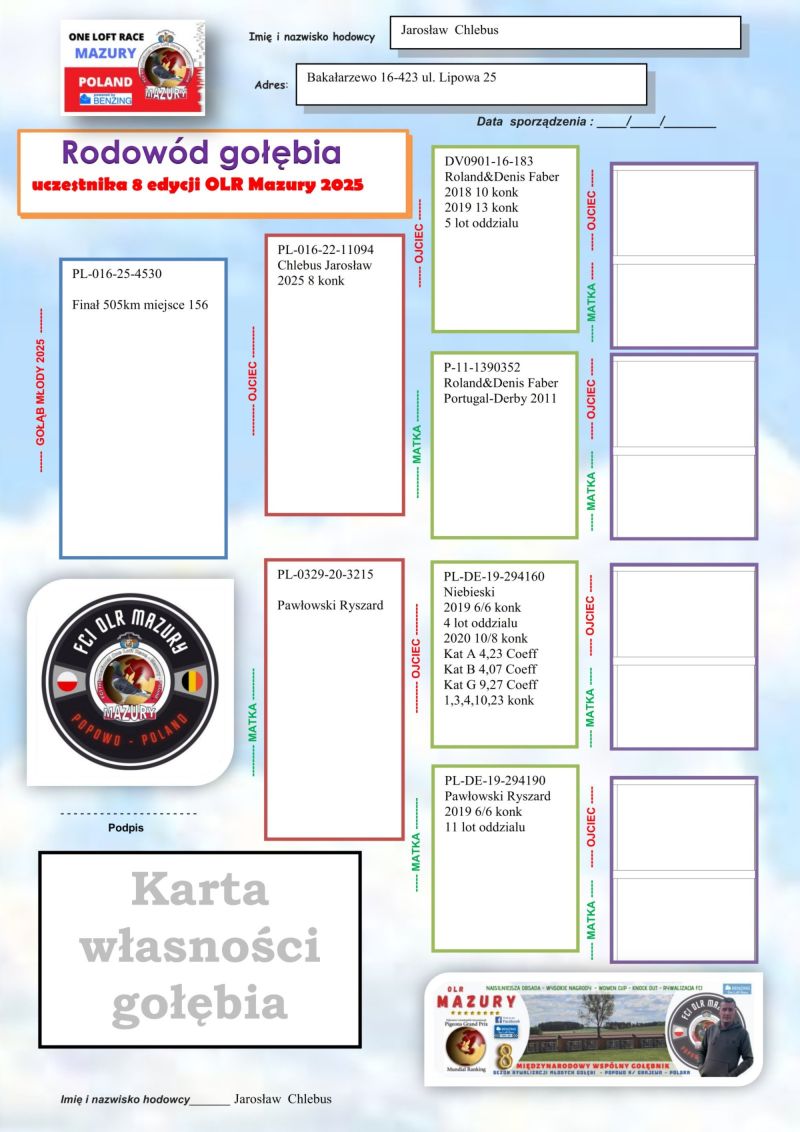 PL-0179-25-5193 - Zawisza Zbigniew i Damian – gołąb po całym programie lotowym