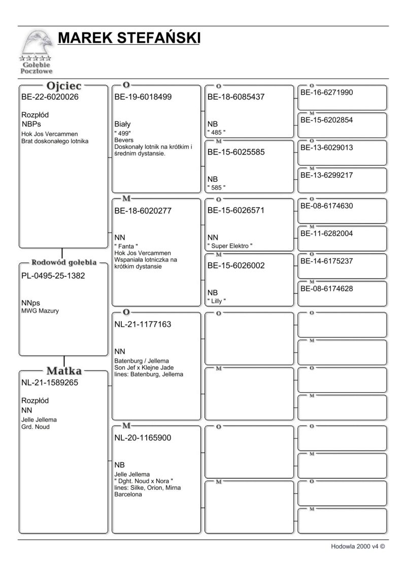 Szczegóły pochodzenia w rodowodzie. Pełne wyniki gołębia w sezonie lotowym na stronie:
