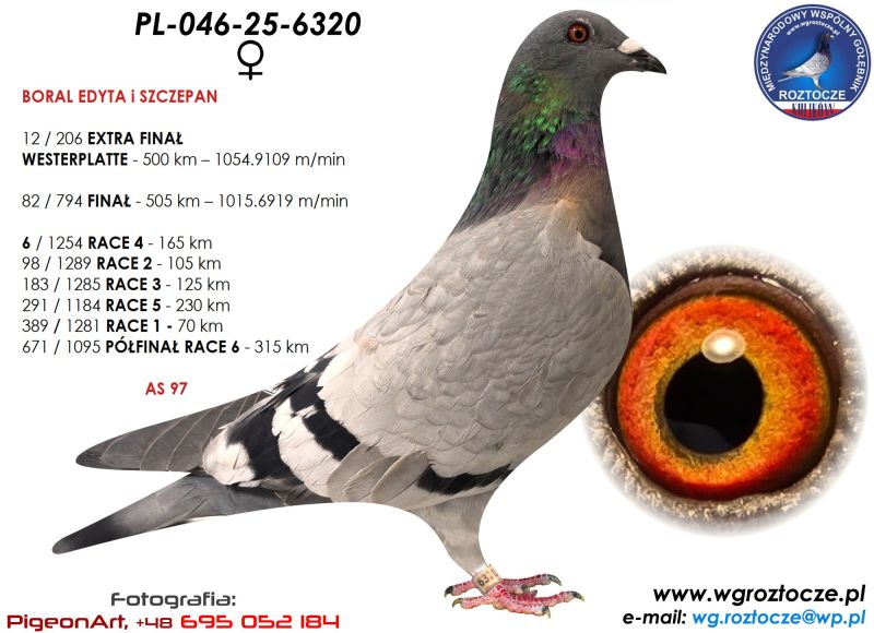 PL-046-25-6320 WG ROZTOCZE FINAŁ 82poz. 505km EXTRA FINAŁ 12 poz.500km 2x500km