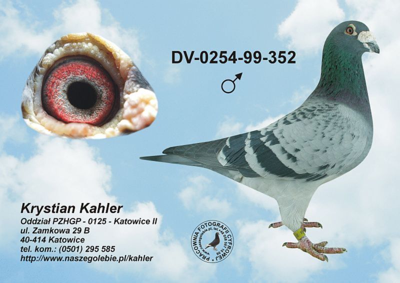 Oryginalny gołąb z hodowli Krystian Kahler. Inbred, wnuk DV-0254-99-352 Horst Felske SUPER AS! rozpłodowy u K.Kahler. DV-0254-99-352 to tato do np.: PL-0152-06-152 (71 konk. 2007-2013r)..... Samiec zdrowy, płodny! Szczegóły pochodzenia w rodowodzie. Wiecej informacji pod nr tel.: 602 846 264