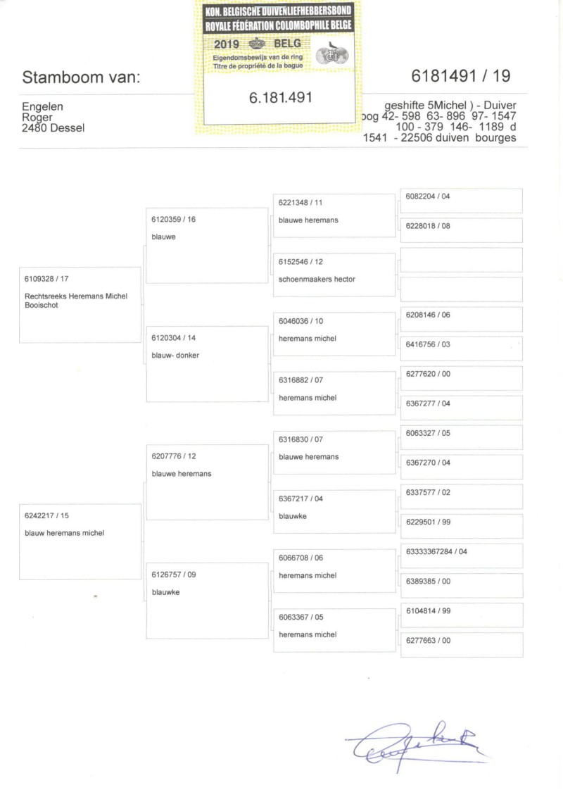 Oryginalny gołąb z hodowli Roger Engelen. Szczegóły w rodowodzie. Odbiór osobisty lub wysyłka kurierem na koszt kupującego W razie pytań proszę o kontakt: 514 746 295