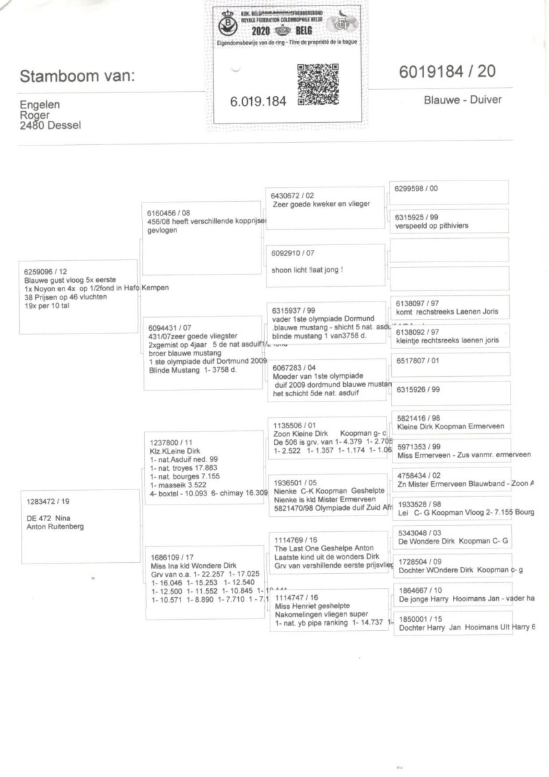 Oryginalny gołąb z hodowli Roger Engelen. Szczegóły w rodowodzie. Odbiór osobisty lub wysyłka kurierem na koszt kupującego W razie pytań proszę o kontakt: 514 746 295