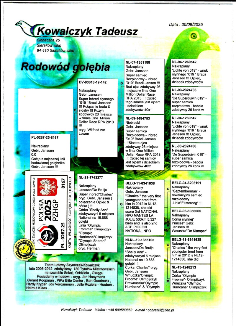 PL-0287-25-8167 - Rewelacyjne połączenie gołębi z hodowli Braci Janssen